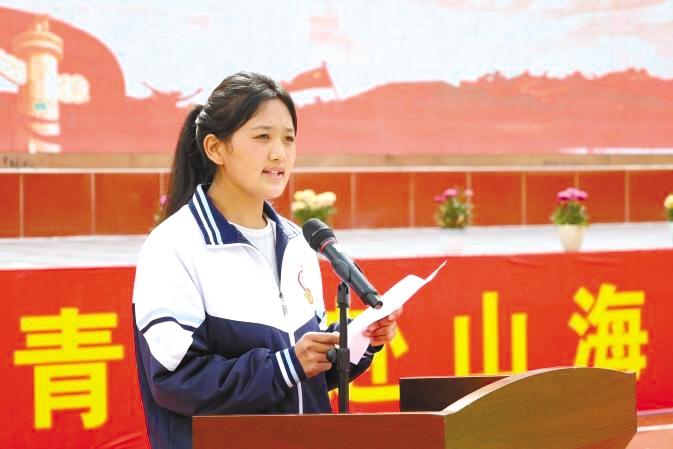 圖為共青團(tuán)昌都市委聯(lián)合市教育局在昌都市第一高級(jí)中學(xué)舉辦“紅色昌都 振興奮進(jìn)”五四青年節(jié)主題團(tuán)日活動(dòng)。圖為在入團(tuán)儀式上,學(xué)生代表作發(fā)言。記者 平措郎加 通訊員 擁金卓嘎 攝