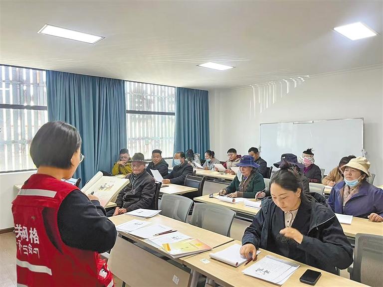 為加大國家通用語言文字推廣普及力度,促進鑄牢中華民族共同體意識,近日,拉薩市城關(guān)區(qū)納金村面向轄區(qū)居民,舉辦國家通用語言文字培訓(xùn)班,加深各民族群眾之間情感。