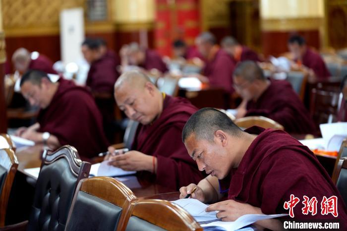 圖為5月30日,中國(guó)藏語(yǔ)系高級(jí)佛學(xué)院2025級(jí)高級(jí)學(xué)銜班招生考試在西藏拉薩考點(diǎn)舉行通識(shí)知識(shí)考試。中新社記者 李林 攝
