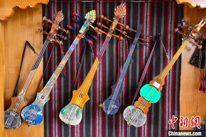 6月14日,記者走進西藏自治區(qū)日喀則市拉孜縣熱薩鄉(xiāng),探訪中國國家級非物質(zhì)文化遺產(chǎn)“扎念琴制作技藝”的具體制作過程。扎念琴,又名六弦琴,是西藏傳統(tǒng)歌舞“堆諧”中最常用的彈撥樂器。扎念,藏語意為“悅耳動聽之聲”。在西藏,扎念琴深受廣大群眾喜愛。2014年,“扎念琴制作技藝”入選第四批中國國家級非物質(zhì)文化遺產(chǎn)代表性項目名錄。據(jù)了解,扎念琴制作共有5道基本程序:第一步,將整根木材掏空,做成共鳴箱;第二步,制作中間空心的琴桿,裝上名為“卡杺”的面板;第三步,雕刻“馬頭”或“龍頭”形狀的琴頭,安裝在琴桿頂部;第四步,制作附在琴頭、呈半圓形、向后彎曲且中間開有弦槽的扎念弦軸。最后一步,挑選羊腸、牛筋、絲線等不同材料來制作琴弦。扎念琴制作技藝的特別之處在于,為了琴身的美觀,初制后還要通過雕刻馬頭、龍頭、火焰等形狀作為裝飾,讓扎念琴更具特色。圖為制作完成的扎念琴。貢確 攝