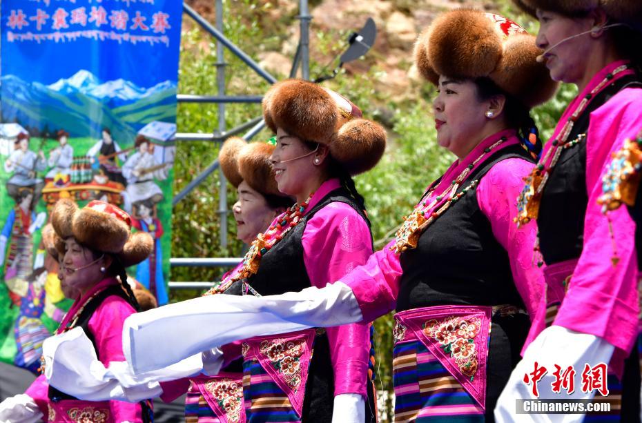 6月28日,拉薩首屆林卡囊瑪堆諧大賽在達孜區(qū)舉辦。現(xiàn)場,經(jīng)過前期海選入圍的19支隊伍依次上臺競技。囊瑪和堆諧,合稱囊瑪堆諧,是西藏民間歌舞發(fā)展到較高層次、集歌舞樂為一體的珍貴傳統(tǒng)文化藝術遺產(chǎn),深受當?shù)孛癖姷南矏叟c追捧。圖為首屆林卡囊瑪堆諧大賽比賽現(xiàn)場。
