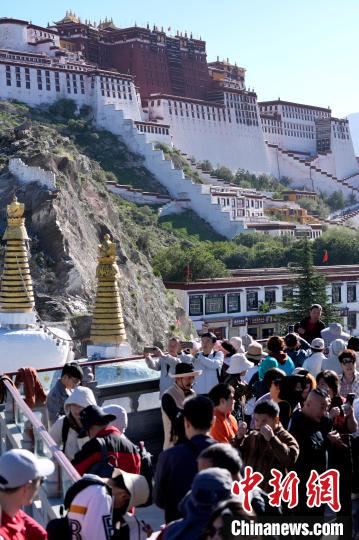 圖為游客在布達(dá)拉宮廣場(chǎng)拍照。中新社記者 李林 攝