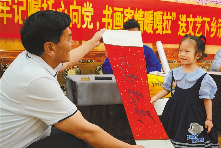 近日,林芝市文聯(lián)在巴宜區(qū)林芝鎮(zhèn)嘎拉村開展“牢記囑托心向黨 書畫寄情暖嘎拉”送文藝下鄉(xiāng)活動。書法家們揮毫潑墨,將飽含著美好祝福與深厚情誼的書法作品贈送給村民;美術(shù)家和攝影家則帶來記錄嘎啦村發(fā)展變遷、村民們幸福生活的作品。