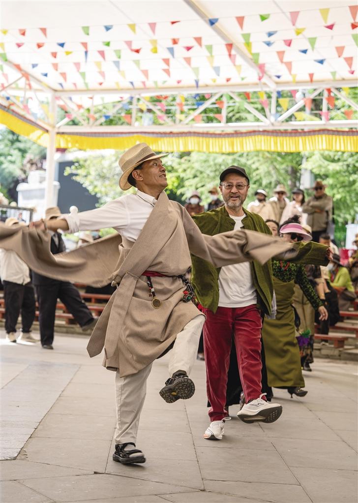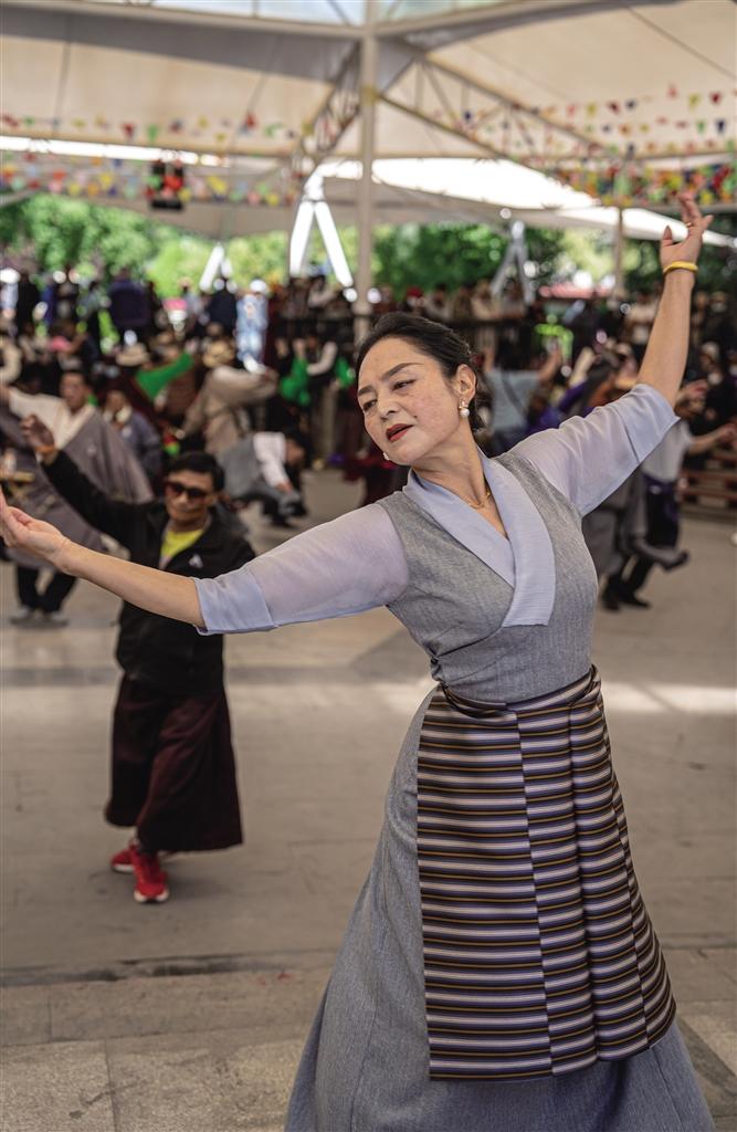 當(dāng)?shù)谝豢|晨光輕柔地灑在拉薩宗角祿康公園,鍋莊舞的旋律如同靈動(dòng)的精靈,每日都會(huì)準(zhǔn)時(shí)在公園響起。