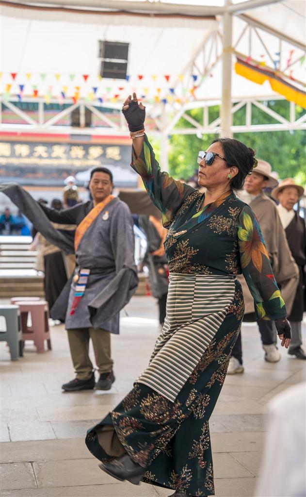 踢踏聲中,老人們甩掉了腰酸腿痛,年輕人驅(qū)散了工作疲憊。鮮艷的藏裝旋出歡樂(lè)弧線,嘹亮的歌謠唱出心底喜悅。藏裝翻飛如彩蝶,歌聲清亮繞湖岸,每一個(gè)旋轉(zhuǎn)都盛滿笑意。