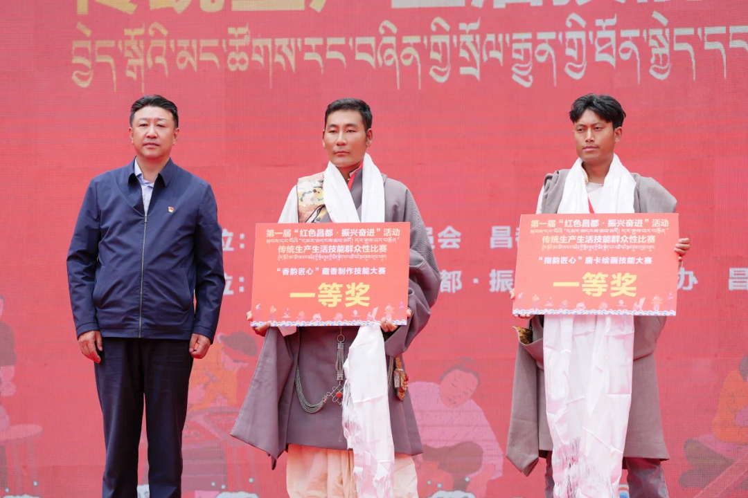 首日賽事中,貢覺(jué)縣仁青多吉、江達(dá)縣旺扎、貢覺(jué)縣白瑪旺秋分別獲得唐卡繪畫比賽前三名,察雅縣西熱扎巴、貢覺(jué)縣西繞尼瑪、貢覺(jué)縣西繞分別獲得藏香制作比賽前三名。