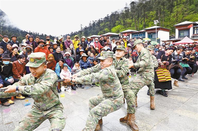 圖為洛扎縣干部群眾和駐地官兵舉行拔河比賽,共同營(yíng)造軍地團(tuán)結(jié)一心、積極向上的民族團(tuán)結(jié)社會(huì)氛圍。