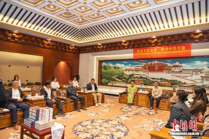 圖為8月27日,中國(guó)華夏文化遺產(chǎn)基金會(huì)向西藏博物館捐贈(zèng)《文成公主》連環(huán)畫(huà)等作品現(xiàn)場(chǎng)。(主辦方供圖)