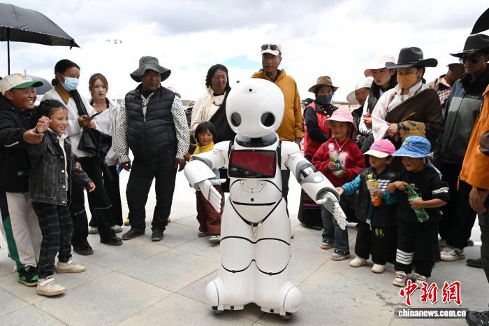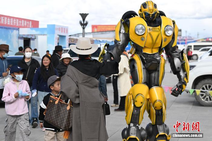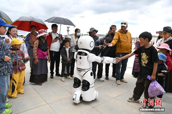 9月6日,西藏自治區(qū)那曲市恰青賽馬節(jié)現(xiàn)場(chǎng),一場(chǎng)別開(kāi)生面的互動(dòng)熱鬧上演。機(jī)器人的驚喜亮相,為這座古老的草原盛會(huì)注入了新鮮科技感。它們?cè)煨酮?dú)特、動(dòng)作靈活,大家紛紛上前與機(jī)器人握手、合影,互動(dòng)氛圍格外熱烈。這種傳統(tǒng)節(jié)日與現(xiàn)代科技的創(chuàng)新融合,正碰撞出別樣的節(jié)日火花。圖為機(jī)器人與小朋友互動(dòng)。中新社記者 貢嘎來(lái)松 攝