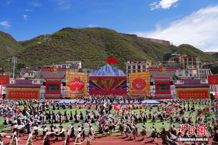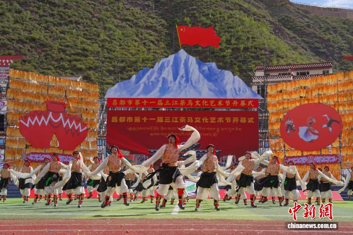 9月15日,西藏自治區(qū)昌都市第十一屆三江茶馬文化藝術節(jié)在津昌體育文化中心啟幕。開幕式以“紅色昌都 三江潮涌”為主題,由中共昌都市委員會、昌都市人民政府主辦,同步融入慶祝西藏自治區(qū)成立60周年元素,盡顯昌都文化魅力與發(fā)展活力。開幕式現(xiàn)場,來自昌都11縣(區(qū))、身著絢麗節(jié)日盛裝的游行方陣依次登場,各方陣通過特色展演展現(xiàn)地域文化風采。隨后,正式文藝表演拉開帷幕,表演共分為“三江奔騰·紅色昌都”“金沙江·紅色起點”“怒江·指尖上的傳承”“瀾滄江·高原上的燈塔”“同心筑夢向未來”五個篇章。康巴文化藝術團、天津青年友好使者藝術團、全國廣場舞愛好者及11縣(區(qū))藝術團等千余名表演者同臺獻藝。圖為開幕式上的文藝演出。貢確 攝