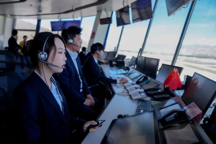 2025年7月18日,管制員在拉薩貢嘎國際機(jī)場塔臺工作。中新社記者 張祥毅 攝