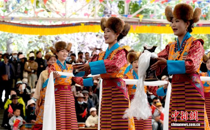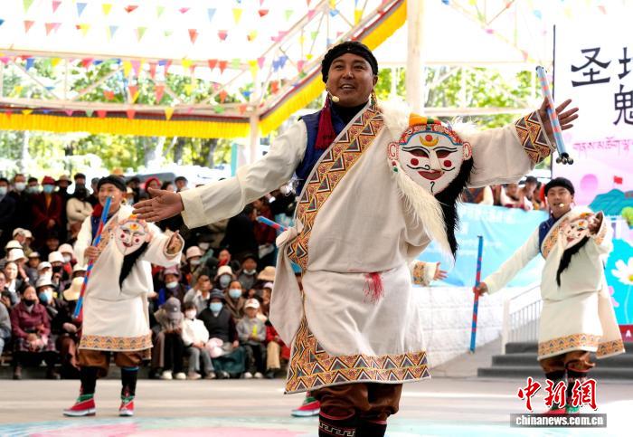 10月19日,“格桑花杯”拉薩市第六屆縣(區(qū))藝術(shù)團(tuán)文藝調(diào)演頒獎(jiǎng)活動(dòng)在布達(dá)拉宮腳下的宗角祿康公園舉行?,F(xiàn)場(chǎng),拉薩市各縣(區(qū))藝術(shù)團(tuán)帶來精彩節(jié)目。圖為文藝調(diào)演頒獎(jiǎng)活動(dòng)上的文藝表演。中新社記者 李林 攝
