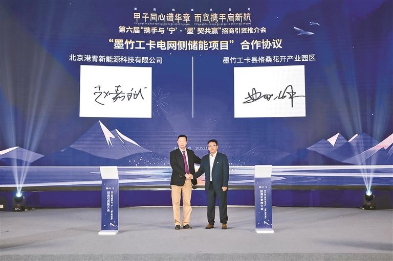 圖為第六屆“攜手與‘寧’ ·‘墨’契共贏”招商引資推介會簽約儀式現(xiàn)場。