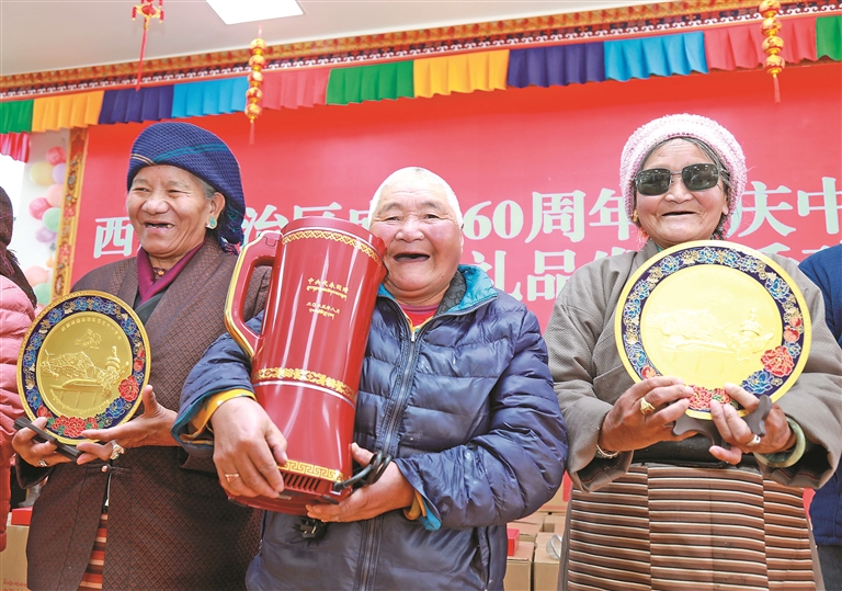 近日,墨竹工卡縣在縣集中供養(yǎng)中心舉行西藏自治區(qū)成立60周年紀(jì)念品發(fā)放活動。相關(guān)部門工作人員為老人們發(fā)放中央代表團(tuán)贈送的全自動酥油茶壺、工藝擺件等紀(jì)念品,并現(xiàn)場宣講黨的二十屆四中全會及自治區(qū)黨委十屆九次全會精神。老人們收到禮品后備感溫暖,紛紛表達(dá)對祖國繁榮昌盛的美好祝愿。