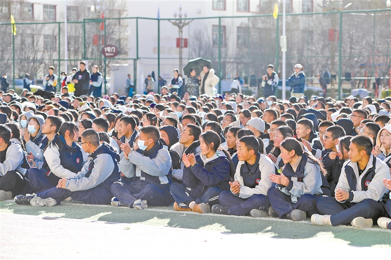 學(xué)生們在現(xiàn)場認(rèn)真聆聽并熱烈鼓掌。記者 貢秋曲措 攝