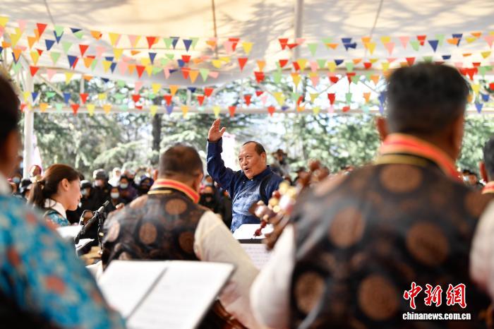 圖為群眾音樂會,民樂合奏《夏爾巴的歌聲》精彩上演。中新社記者 貢嘎來松 攝