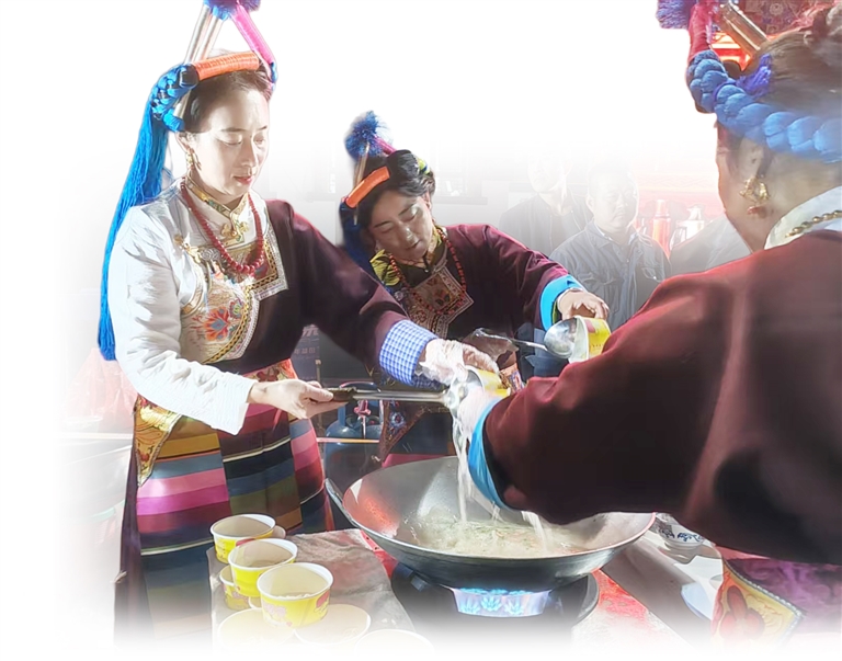在芒康縣,像卓瑪拉姆這樣依托加加面發(fā)展致富的家庭還有很多。對于更多經(jīng)營加加面的家庭而言,這碗面不僅讓他們增收致富,更讓他們在傳承傳統(tǒng)文化的過程中,找到了自身的價值。他們當(dāng)中,有返鄉(xiāng)創(chuàng)業(yè)的年輕人,有世代傳承的老手藝人,還有曾經(jīng)的貧困戶,憑借著一碗碗加加面過上了富足生活。對于這些家庭而言,加加面絕非一碗普通的面條,而是鹽井人民生活的生動見證——它承載著厚重的文化底蘊(yùn),是旅游經(jīng)濟(jì)的堅(jiān)實(shí)支柱,更是他們走向富裕生活的“金鑰匙”。