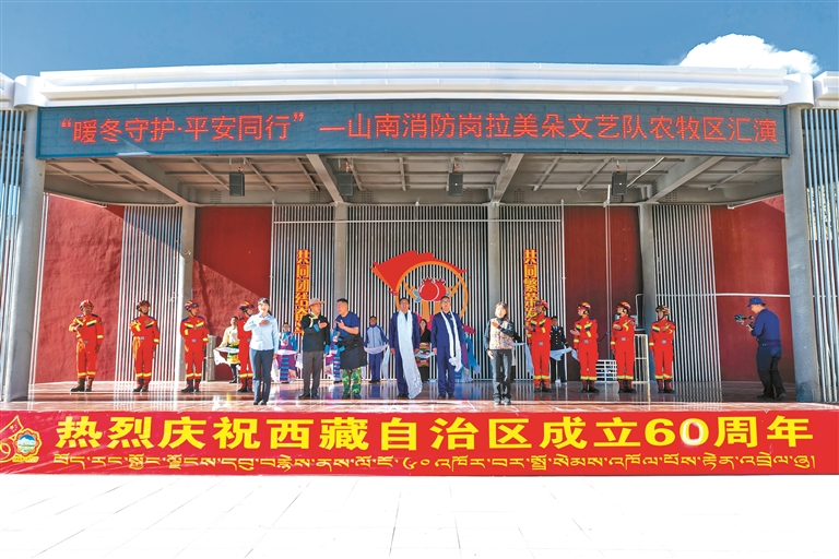 近日,山南市消防救援支隊(duì)崗拉美朵文藝隊(duì)“農(nóng)牧區(qū)暖冬消防行”巡演首演,在乃東區(qū)多頗章鄉(xiāng)嘎東團(tuán)結(jié)新村正式拉開帷幕。