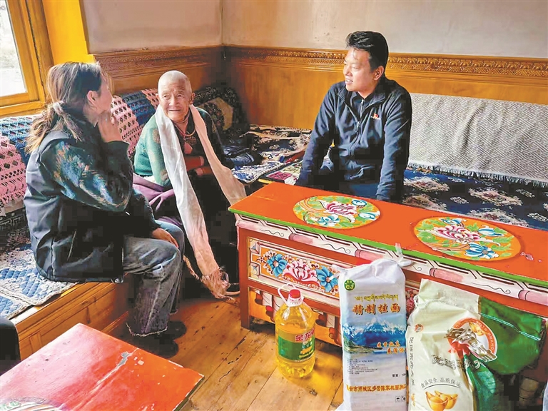 圖為洛隆縣孜托鎮(zhèn)駐村工作隊到群眾家中看望慰問老人。
