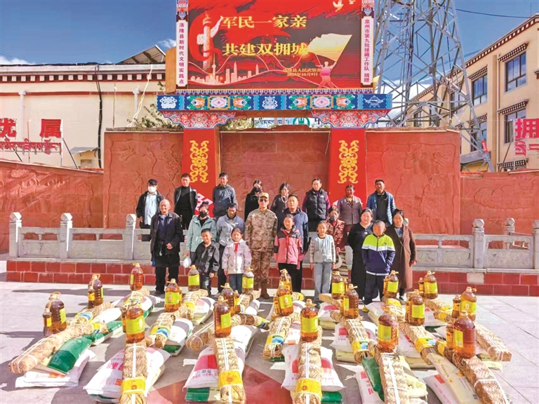 圖為洛隆縣人武部、孜托鎮(zhèn)攜手開展新年慰問活動。記者 溫凱 攝