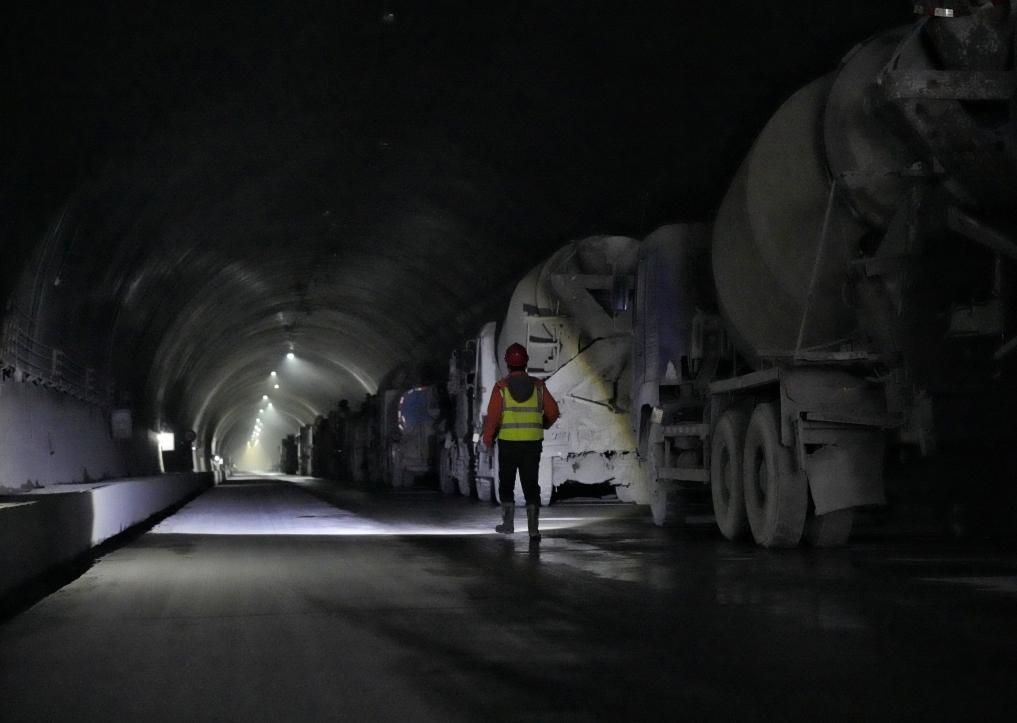 工人們在折多山隧道內(nèi)巡查。新華社記者劉坤 攝