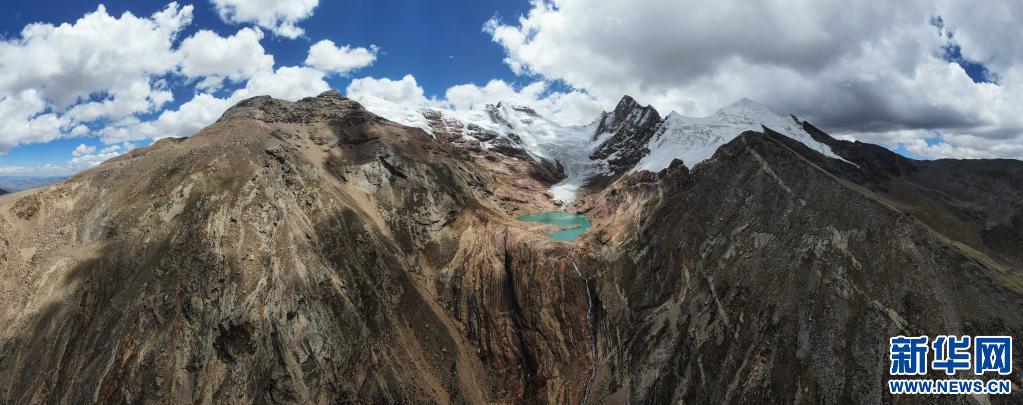 鳥瞰雅拉香布雪山腳下的冰川融水湖(6月4日攝,無人機照片)。新華社記者 洛卓嘉措 攝