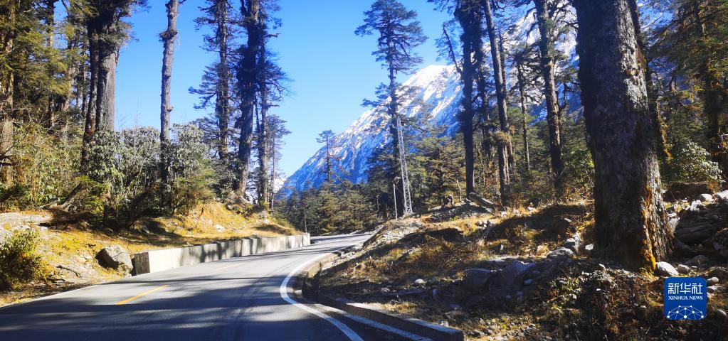 這是在通往墨脫縣城的路上拍攝的嘎龍拉雪山(12月21日攝)。新華社記者 覺(jué)果 攝