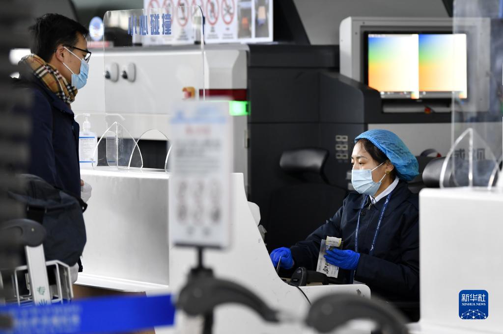 12月30日,拉薩貢嘎機(jī)場(chǎng)一名地勤人員在為乘客辦理登機(jī)手續(xù)。新華社記者 張汝鋒 攝