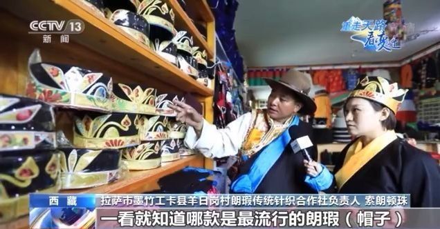 拉薩市墨竹工卡縣羊日崗村朗瑕傳統(tǒng)針織合作社負(fù)責(zé)人 索朗頓珠:我們這的姑娘小伙兒,一看就知道哪款是最流行的朗瑕(帽子),這是個(gè)去年款,這個(gè)是今年的款。你看,這兩個(gè)是牦牛角。朗瑕(帽子)很有我們藏族特色,同時(shí)也在與時(shí)俱進(jìn),看這些做工、花紋越來(lái)越精致了。