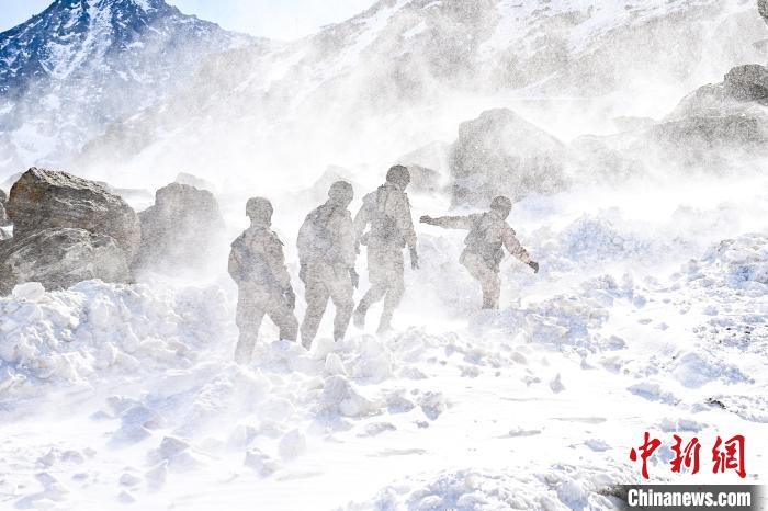 在官兵們的記憶中,最難的是大雪封山的時候,因為道路不通,車輛無法抵達的地方,都需要腳步去丈量。大家早上6點就得出發(fā),在狂風中徒步30公里左右,晚上22點左右才能返回?!帮L最大的時候,腳抬起來就踩不下去,阻力很大。甚至把碎石還有山頂?shù)难┐灯饋?,打到臉上,即使大家戴了防護面罩和防風眼鏡,依然抵擋不住?!敝笇T劉沛霖說。