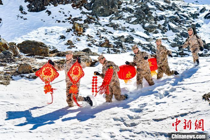 近日,西藏軍區(qū)標沙拉錯哨點官兵們喜迎遠道而來的年貨,有牛肉、羊肉、各種蔬菜水果等,送菜的隊伍還給他們帶來了紅燈籠、中國結(jié)、福字等,萬象更新的新年,哨所官兵們堅守在這里,守護萬家燈火。