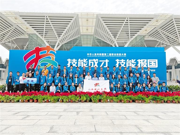 2023 年中華人民共和國第二屆職業(yè)技能大賽在天津市舉辦,西藏代表團(tuán)合影。