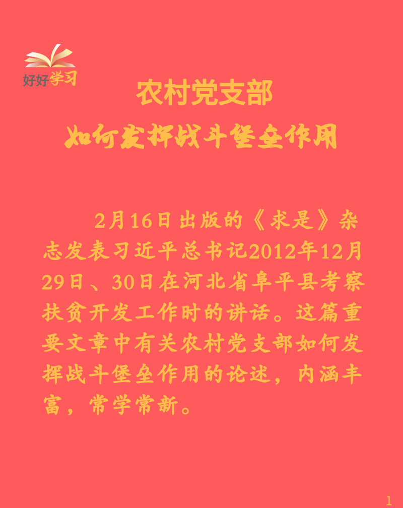 好好學習|農(nóng)村黨支部如何發(fā)揮戰(zhàn)斗堡壘作用