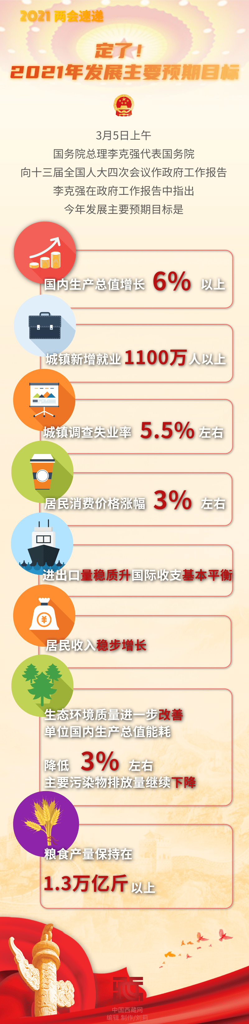 【兩會速遞】定了!2021年發(fā)展主要預(yù)期目標(biāo)公布 國內(nèi)生產(chǎn)總值增長6%以上