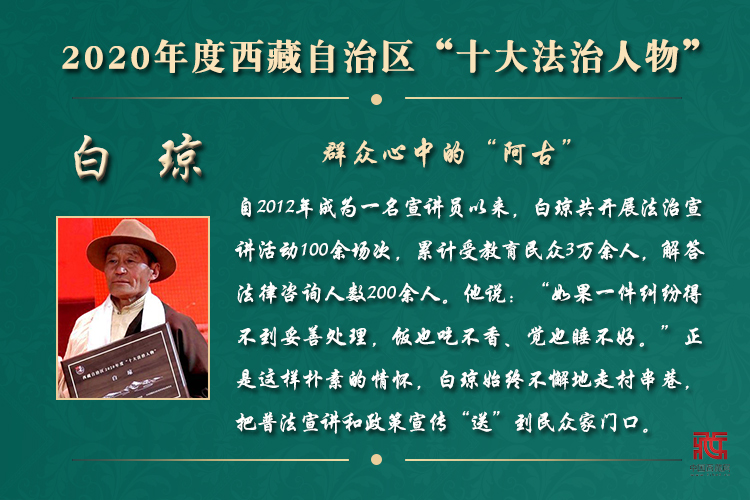 在法治西藏建設(shè)過程中,涌現(xiàn)出一大批辛勤付出、任勞任怨、一心為民、敢于亮劍、影響廣泛、群眾認可的典型人物。他們長年累月奔波在基層一線,活躍在田間地頭,踐行法治理念,彰顯公平正義,在高原大地傳播法治精神,為各族群眾送去法治溫暖。(中國西藏網(wǎng) 責編/常薇薇 美編/朱翠平)