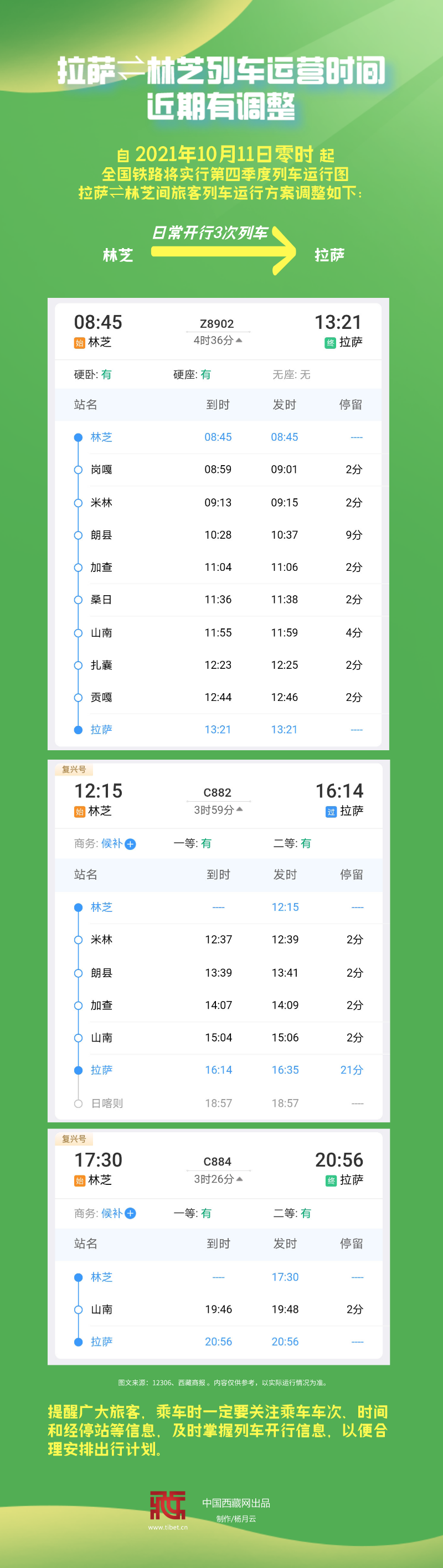 長圖|拉薩?林芝列車運(yùn)營時間近期有調(diào)整
