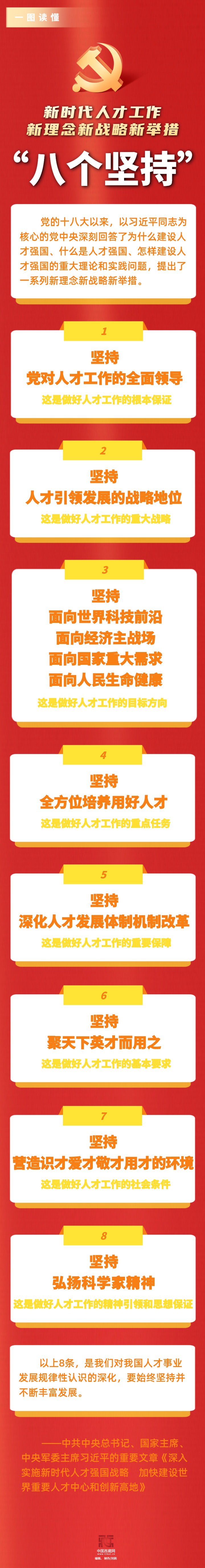 一圖讀懂丨新時(shí)代人才工作新理念新戰(zhàn)略新舉措“八個(gè)堅(jiān)持”