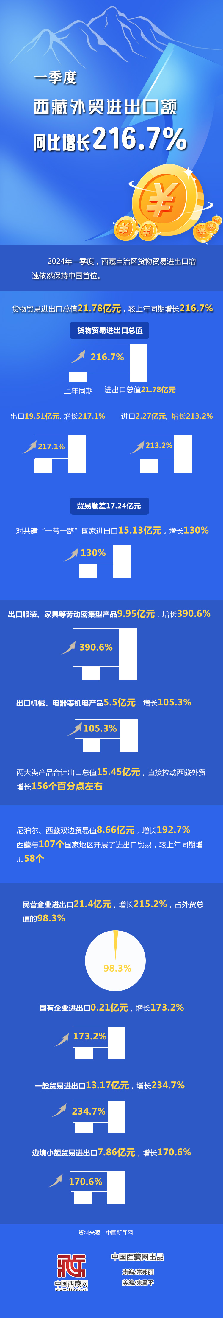 一季度西藏外貿(mào)進(jìn)出口額同比增長216.7%