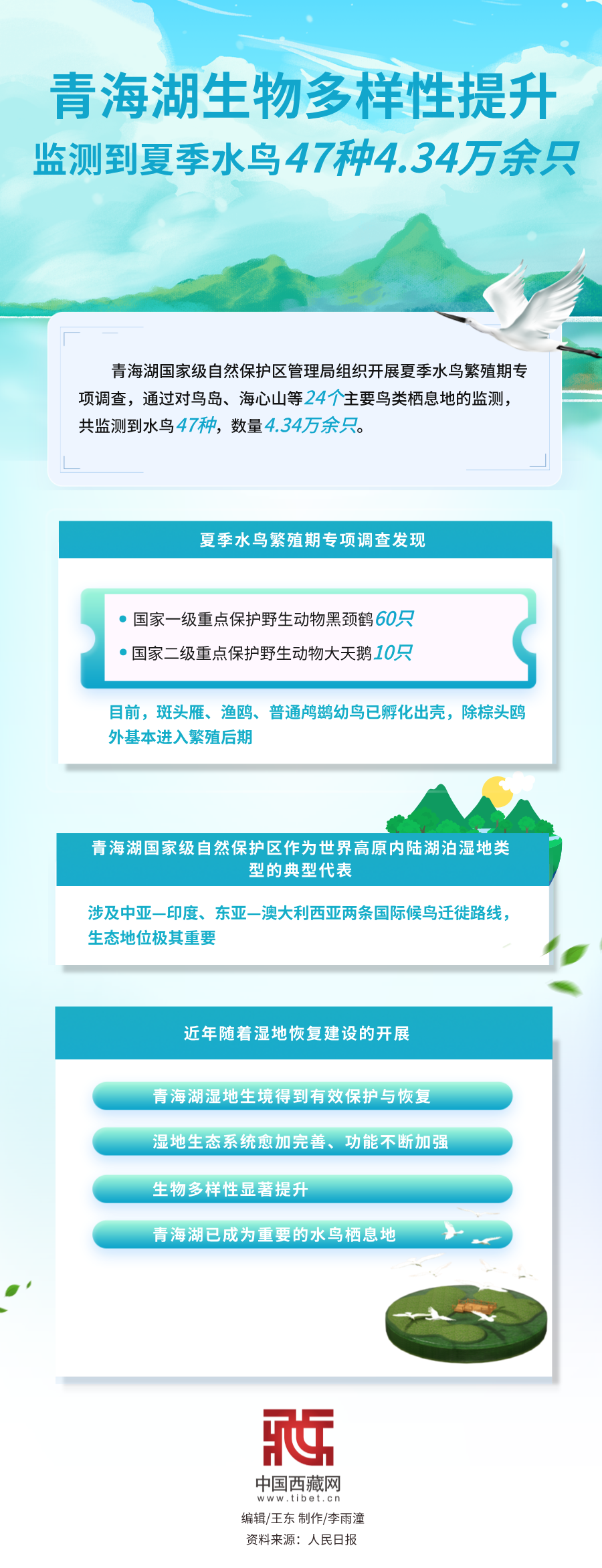 海報|青海湖生物多樣性提升 監(jiān)測到夏季水鳥47種4.34萬余只