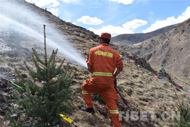 圖為昌都市森林消防支隊(duì)江達(dá)中隊(duì)積極參加駐地植樹活動(dòng)