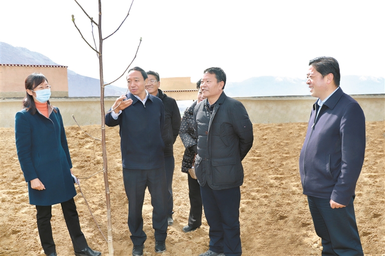 23日,西藏自治區(qū)黨委常委、拉薩市委書記白瑪旺堆赴拉薩市南北環(huán)沿線、柳梧隧道等地調(diào)研造林綠化工作。圖為白瑪旺堆在調(diào)研城關區(qū)娘熱街道核桃種植項目。拉薩融媒記者 趙 慧攝