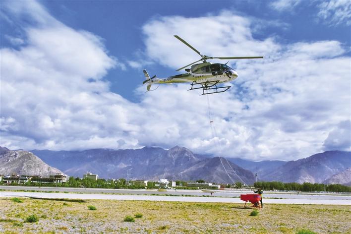6月9日上午10時(shí)許,西藏自治區(qū)拉薩雪鷹通用航空公司的停機(jī)坪上,兩架直升機(jī)正在進(jìn)行飛行前的準(zhǔn)備工作。這次飛行和以往的每一次飛行都不一樣,因?yàn)轱w機(jī)要攜帶造林用的種子,在空中進(jìn)行撒播——也就是飛播造林。