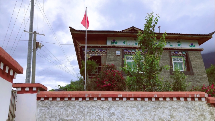 據(jù)色果拉村村支書介紹,色果拉村居民喜愛把鮮艷的五星紅旗插在屋頂,以往由于風(fēng)沙大,經(jīng)常把插在屋頂?shù)膰齑低?,于是村民自發(fā)在每家每戶門前修建了升旗臺,每到國慶、“七一”等重大節(jié)日,都會舉行升旗儀式。另外,村委會有專門的舊國旗回收箱,用來收納村民家里的舊國旗,村民上交舊國旗可以換取新的國旗。