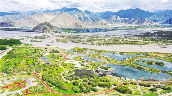 拉薩經(jīng)開(kāi)區(qū)河畔公園全景圖。