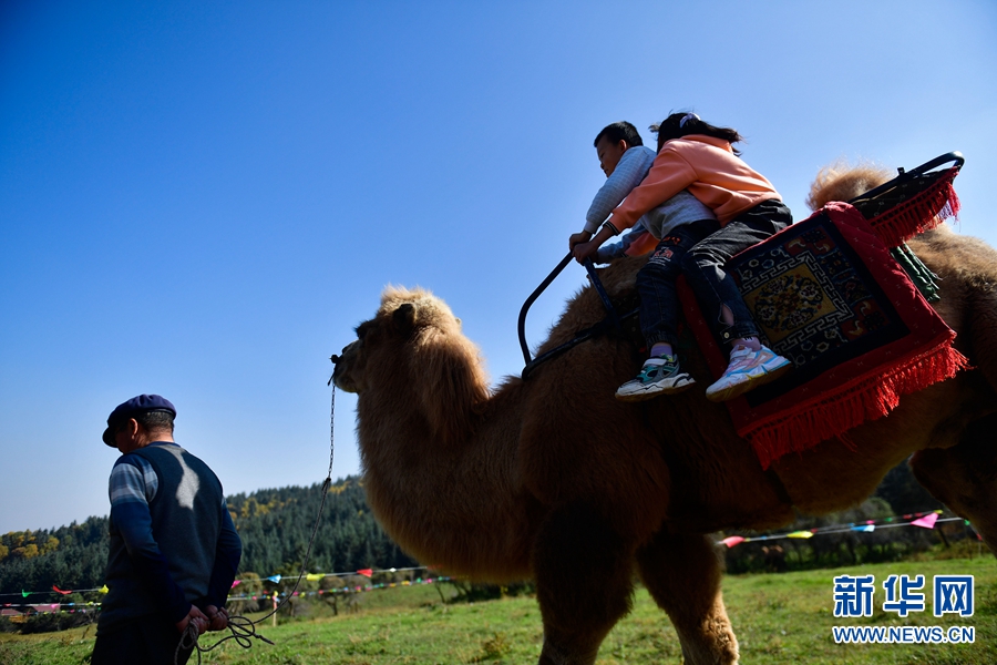 游客在青海省西寧市湟中區(qū)攔隆口鎮(zhèn)卡陽村景區(qū)內(nèi)體驗騎駱駝。新華社記者 張龍 攝