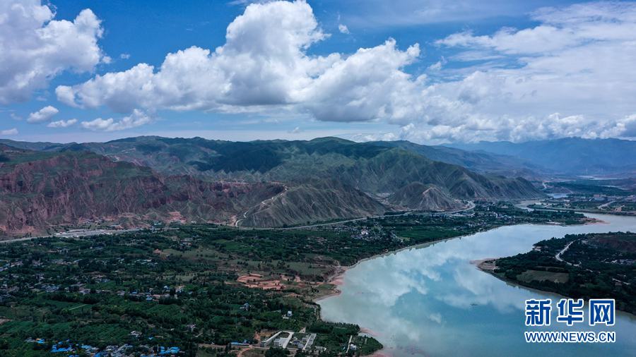 這是7月10日拍攝的位于海東市化隆回族自治縣境內(nèi)的黃河及沿岸景觀(無人機照片)。新華社記者 吳剛 攝