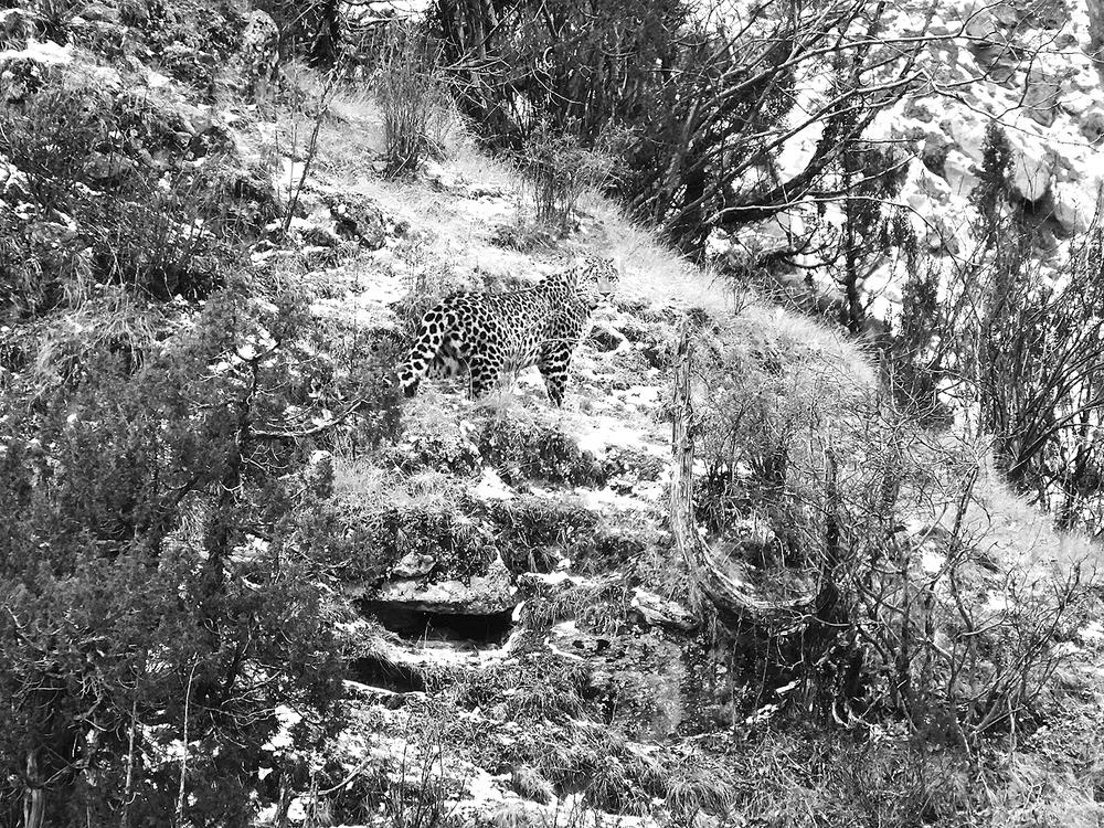 近日,在三江源國(guó)家公園瀾滄江源園區(qū)昂賽保護(hù)分區(qū)內(nèi),當(dāng)?shù)匾晃荒撩窈蜕鷳B(tài)體驗(yàn)者,分別拍攝到珍貴的金錢豹畫面。三江源國(guó)家公園是中國(guó)首個(gè)國(guó)家公園體制試點(diǎn),包括長(zhǎng)江源(可可西里)、黃河源、瀾滄江源三個(gè)園區(qū)在內(nèi)的“一園三區(qū)”,是青藏高原生態(tài)系統(tǒng)的典型代表,分布雪豹、金錢豹、藏羚羊、黑頸鶴等珍稀物種,被稱“高原野生動(dòng)物王國(guó)”“高寒生物種質(zhì)資源庫(kù)”。圖為女性牧民仁青央忠拍攝的金錢豹。 仁青央忠 攝