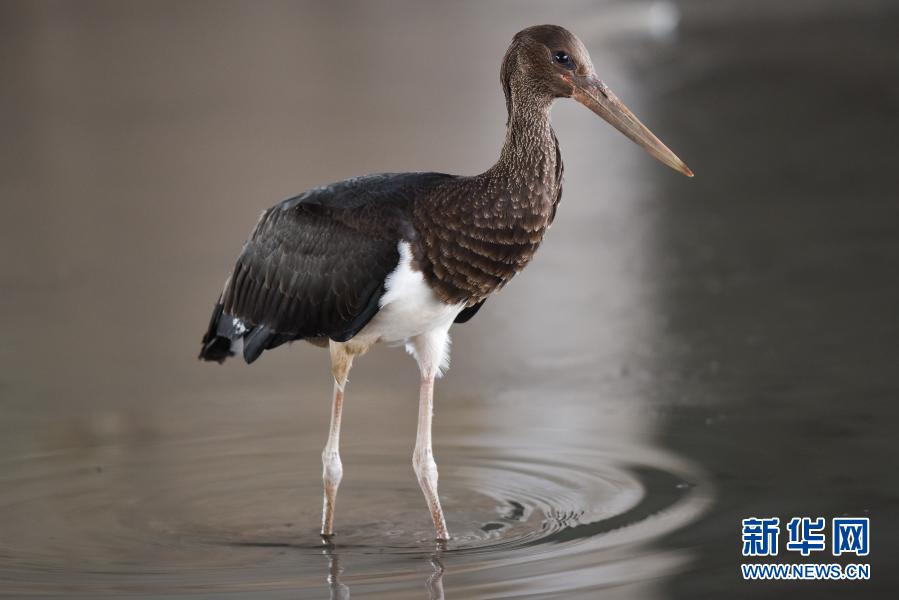 12月6日,一只黑鸛在西寧市北川河濕地公園內(nèi)嬉戲。近日,位于青海省西寧市的北川河濕地公園迎來兩只黑鸛。黑鸛屬鸛形目、鸛科,國家一級保護動物,目前全世界僅存3000只左右,屬于國寶級珍禽。新華社記者吳剛攝