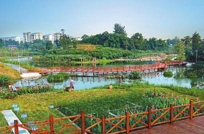 岳池縣長(zhǎng)灘寺河沿岸的人工濕地。涂麗攝