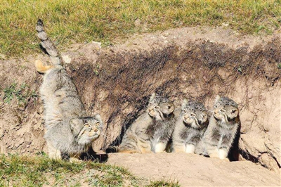 早上8時(shí)左右,五六十米外的巢穴中有了動(dòng)靜,1只兔猻媽媽帶著3只小兔猻出來覓食,和諧的場景沒持續(xù)多久就被遠(yuǎn)處虎視眈眈而來的藏狐打破了。兔猻媽媽警惕地盯著藏狐,發(fā)出短促的警報(bào)聲,3只小兔猻迅速奔回洞穴,攝影師順勢按下快門,《當(dāng)媽媽說跑步前進(jìn)》由此而來。